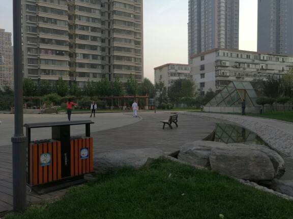 小区里也依然景色优美,晨练的人们还是在认真锻炼。