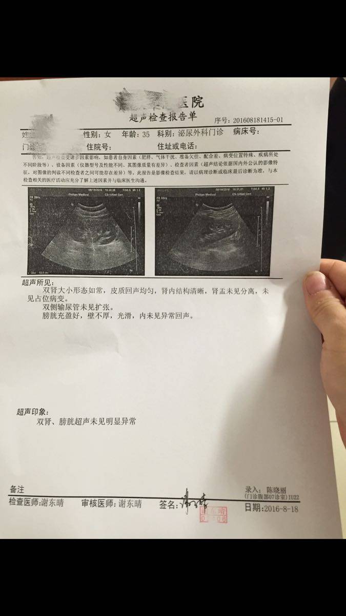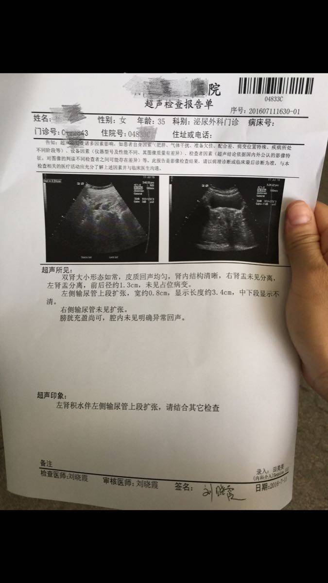 7月复查腹部B超,说左肾积水伴左侧输尿管上段扩张,中下段显示不清,让我8月再去复查。8月中下旬,突然觉得左腹部下又有点不舒服,又去泌尿外科找医生开了B超单,一查竟然没问题了,肾孟不分离,输尿管不扩张。可是为什么自己还会有不舒服呢,医生说泌尿没问题,看看是否妇科的问题。我心想7月份,我才查了妇科B超,一点问题没有,吃内分泌药三个多月子宫内膜0.6。过了几天,左腹不适竟然又自行好了。也真是醉了。