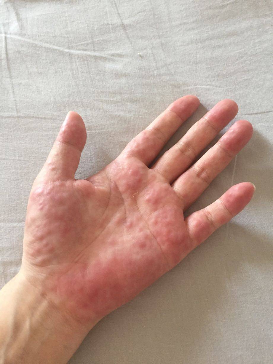 是血管炎么?去医院看了么?又疼又痒有水泡,感觉也像汗疱疹,也是湿疹的一种,中医来讲的是血热,热毒