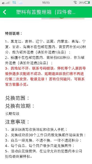 积分换礼物的特别说明