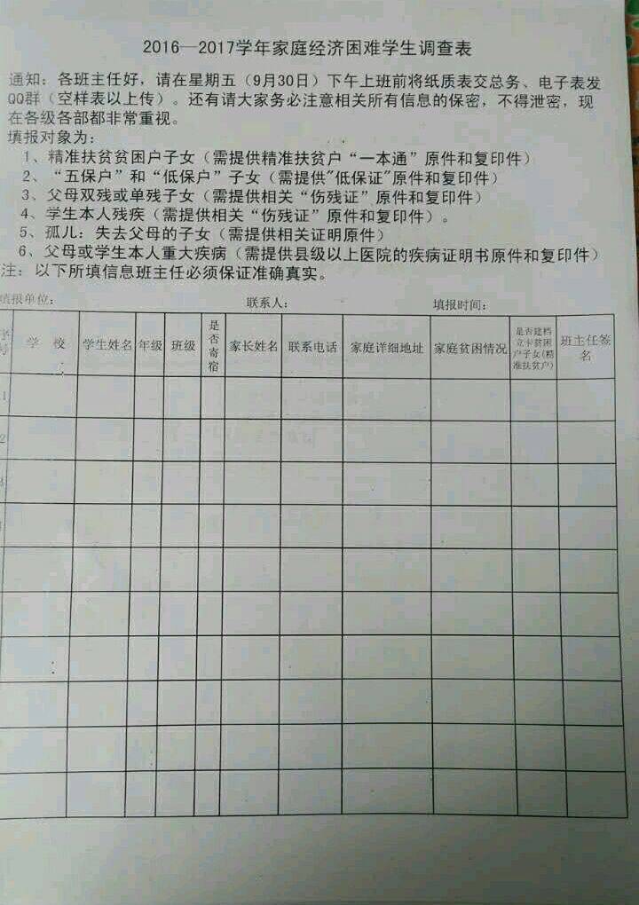 学校调查的,不知道是不是有补助学费很是什么的?弄这个对小孩有没有影响呢?