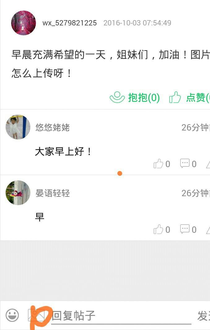 早晨充满希望的一天,姐妹们,加油!图片怎么上传呀!
