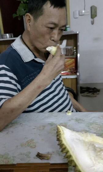 就是这样,我们很难做,我也发现他有点不开心,好像我们不给他吃的样子,于是吃饱了饭,妹妹就说买个榴莲吃,😁最搞笑的是,妹妹伸手向我要钱的时候,爸爸说一句,她又没钱,哈哈,,我笑了,我说,是啊,没钱啊,爸叫妹出钱买😄😄,后面,我还是让妹去买,回来一人一半。看他吃的还行的,有些满足感!