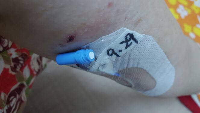 和我一样,应该是外露的塑料部分腾的,塑料不透气,胳膊又出汗,我管下面还出了两个大水泡,昨天找护士外露部分垫了点纱布,胳膊整个用长丝袜固定了。你也可以试试。