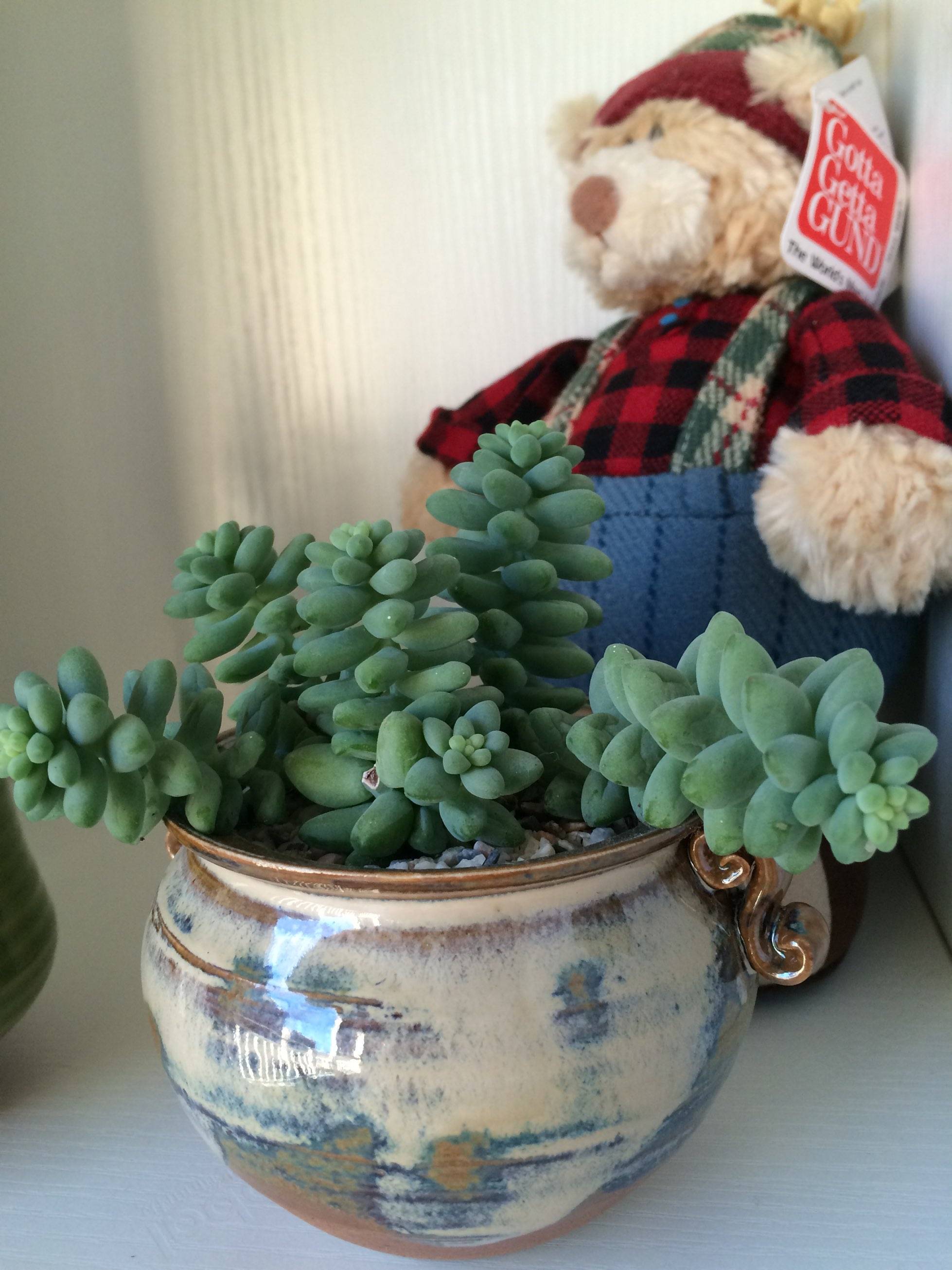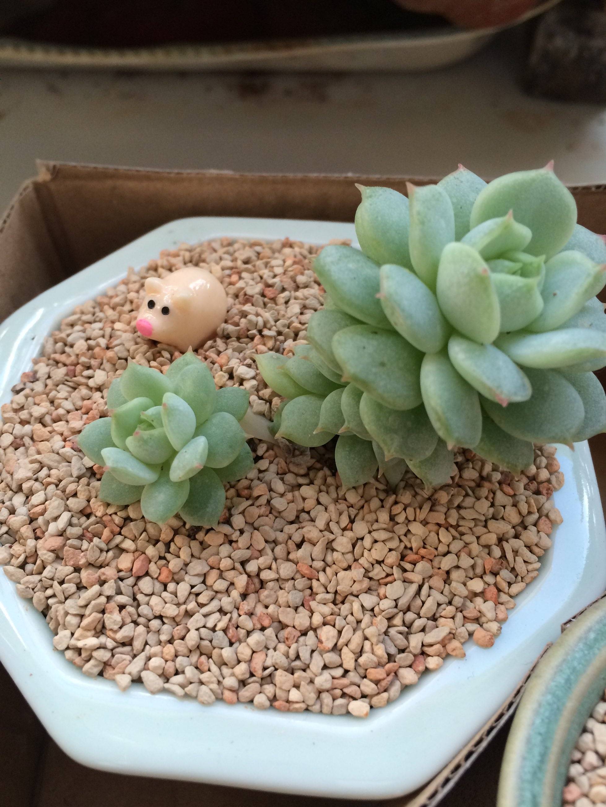 我也养了几种肉肉,我很辛勤的给浇水,换盆,晒太阳,结果经过一年,它再也不是它了,长大之后都长残了,面目全非呀'