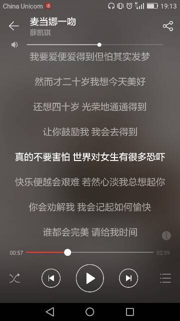分享一下女神薛凯琪Fiona在《麥當娜一吻》中的一句歌詞:真的不要害怕,世界對女生又很多恐嚇。