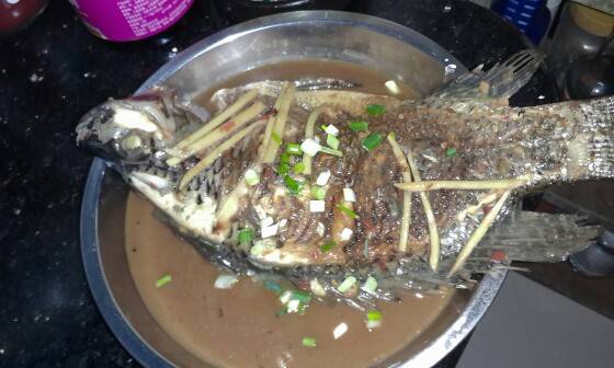 我很欣赏我的红烧鲫鱼,带点辣辣的,good,那个汁下饭好正!!😃😃