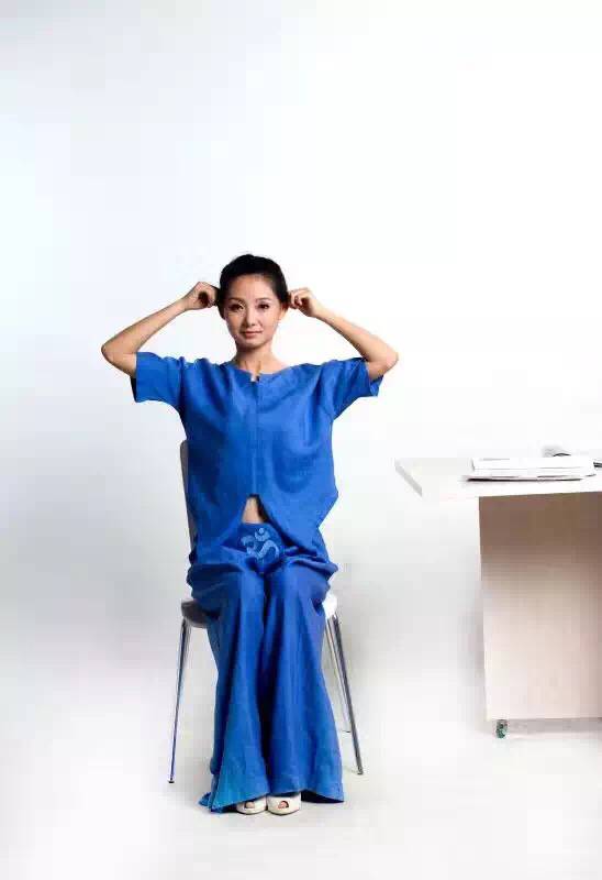 1.坐于椅子二分之一处,挺直腰背;