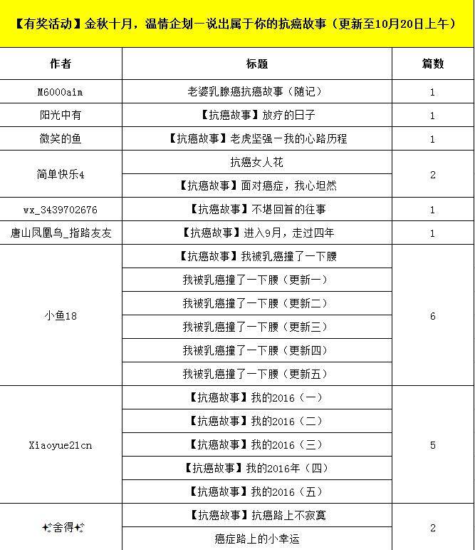 我把有参加本期活动的文章都做了整理,10月21日00:00进入评选,截止日后所有回复人数、阅读人数不再进入统计。