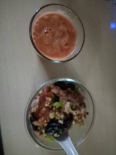 早上六点多出门,练功去啦,下雨天,给自己找了一个好地方,在操场外走长长的廊练不淋雨😄包里一个苹果,练功间休息🍎算是早餐吧。自从练功,早餐从简啦!练完回家11点了,赶紧和面,烧水。还好,11点40给老公公先擀好,煮好汤面条🍜,然后还有俩“小伙子(儿子和老公)”,再擀,小伙子们吃的多,一人一盆,他们吃上我在给自己做了十一谷米炒猪手饭,红萝卜柠檬汁。一上午紧紧张张像打仗。