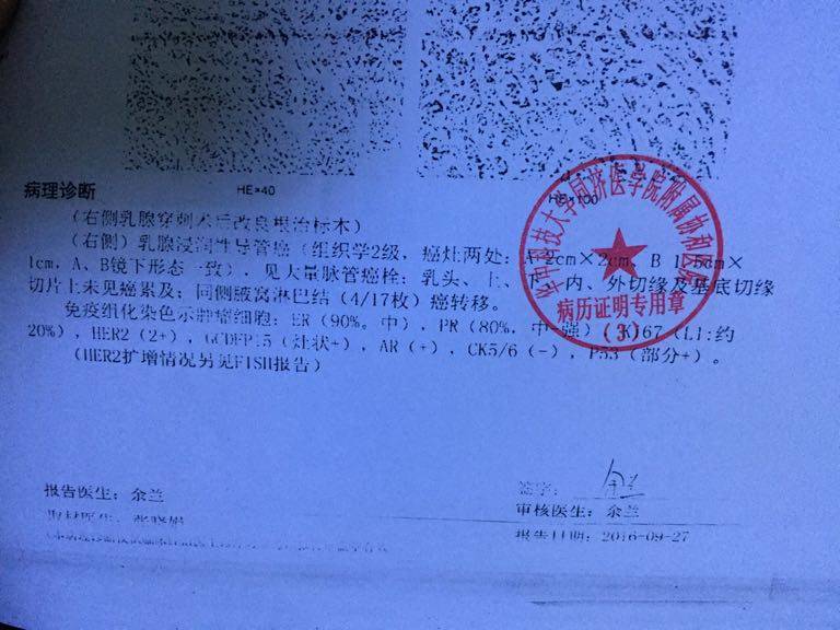 我和你方案一样,类型也一样,但我腋窝转移了6个,我现在第六疗了,我们一起加油↖(^ω^)↗