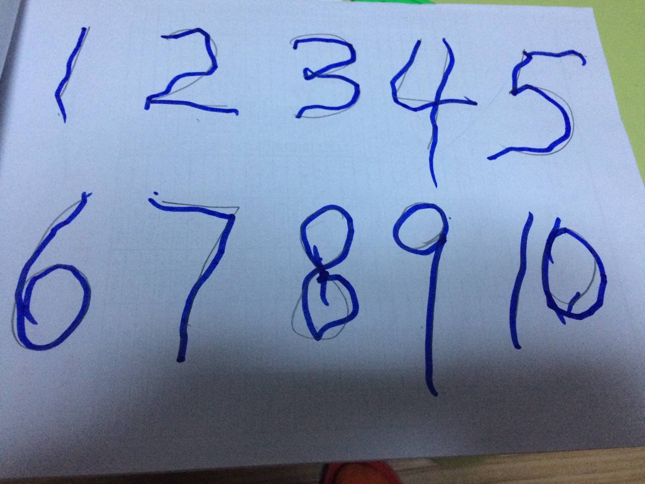 去年还是杂乱无章的,现在可以歪歪扭扭描下来了,就是拐弯还不太好,尤其那个8,孩子坐看右看的,盯了好大一会儿,无从下手……