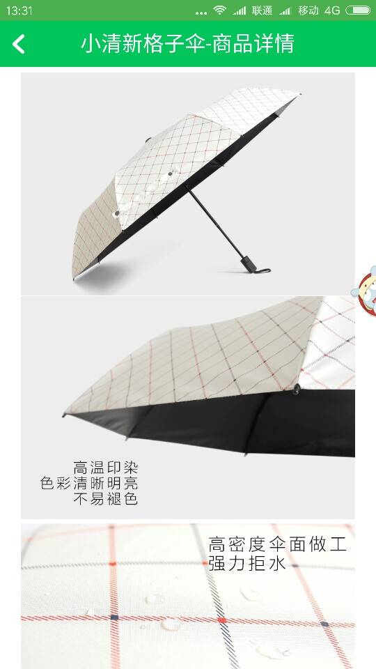 还想给儿子兑个雨伞呢!前两天老公在网上买了一把防晒伞,花60多呢邮到儿子学校竟然是坏的 。还缺一个螺丝,老公说再买一把,我没让,今天一看商城里防晒伞撤了。泪奔啊!