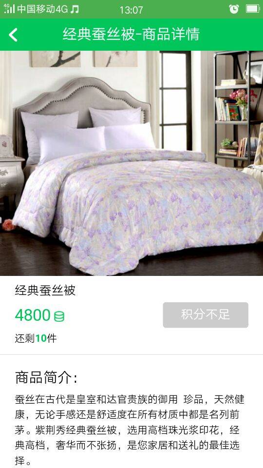 一个保温壶都要三四千分,4800分的蚕丝被含量不可能高的,就是普通被子。