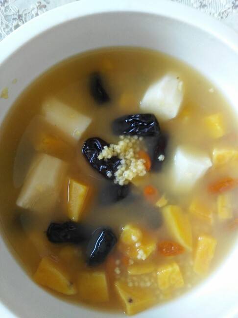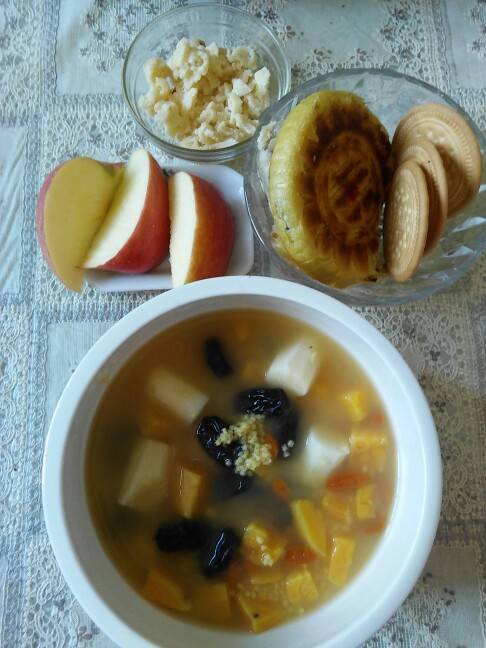 好久没有吃小米粥了,这几天有点口腔溃疡,也没有吃药,小米是朋友从山西晋城给捎过来了,金黄金黄的,里面我放了红薯丁,山药丁,红枣,枸杞,忘记放2颗桂圆了