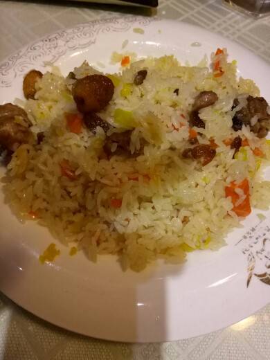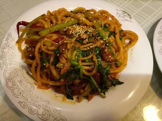 新疆特色抓饭和美味的干煸炒面。
