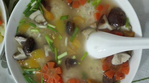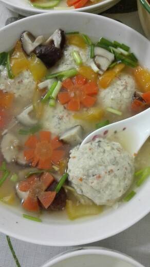 豆腐丸子做法:材料:豆腐一块,不要太嫩的。胡萝卜一根,鲜香菇7_8朵,葱适量,淀粉适量,盐,味精适量。步骤:1.锅中水烧开,加少许盐,放入豆腐焯水后沥干水粉。2.胡萝卜洗净一半切花,一半切成碎末,香菇也洗净一半切块,一半切成碎末。3.豆腐沥干水后捣成泥,这个可以直接用手,加入干淀粉,胡萝卜香菇末,少许盐,味精调匀成糊状,不能加水哦。淀粉的量自己扣,觉得太稀了不能成形就再加一些,关键要拌匀。4.将拌好的豆腐泥用手或小汤匙等工具团成丸子状,装盘。上蒸锅蒸熟。5.铁锅内加水烧开,加入胡萝卜花,香菇,青椒片,煮熟后加入盐味精调味,并加水淀粉勾芡。6豆腐丸子上洒葱花(也可不放),淋上芡汁即成。