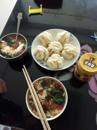 自己蒸的花卷,西红柿,波菜,鸡蛋,紫菜,虾皮汤。花卷有点小我吃了四个喝了两碗汤,小宝吃3三个和两荷包蛋,最近感觉可能吃了,就是不长肉,我还希望我长胖点,因为我皮肤偏黑在加上瘦,谁见了都说皮肤暗沉偏黄,以前还能抹粉擦个增白油,盖一下,现在天天素颜,经常连眉毛都不画就出门。生病也顾不上考虑好看不好看,漂亮不漂亮,我对穿衣吃饭不怎么讲究,说直接就一大老粗,嘿嘿嘿。