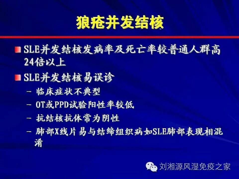 系统性红斑狼疮由于疾病本身的原因及药物的使用,往往极易合并感染,这将进一步加重临床治疗的困难。