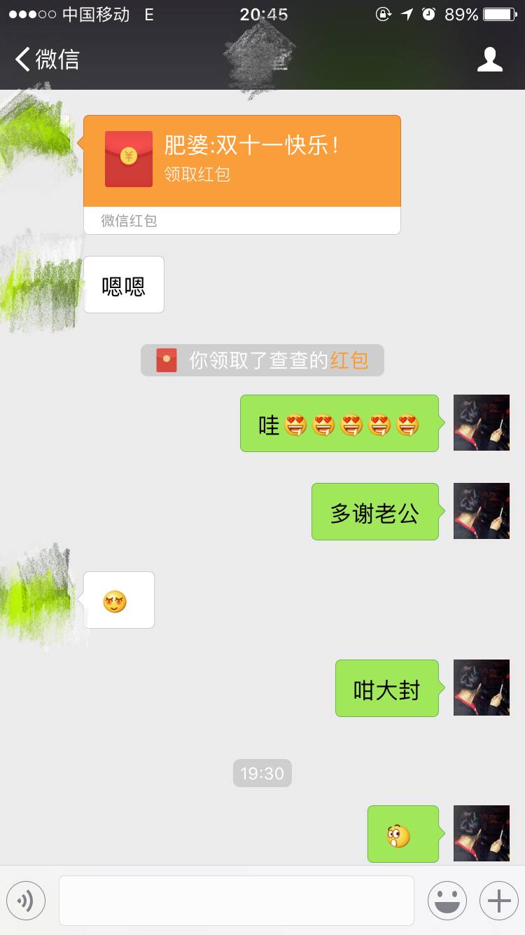 好幸福呀,羡慕。老公从来不给我发红包。