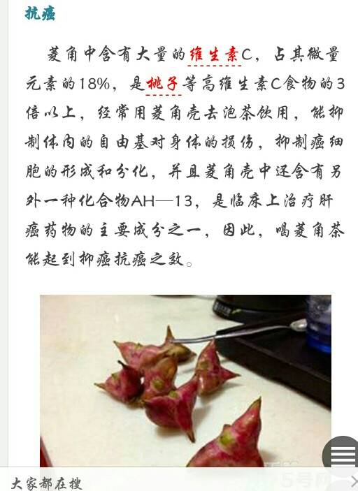 菱角克大寒,不同体质要辩证服用。别一味为了抗癌,把身体搞虚弱了,得不偿失的。