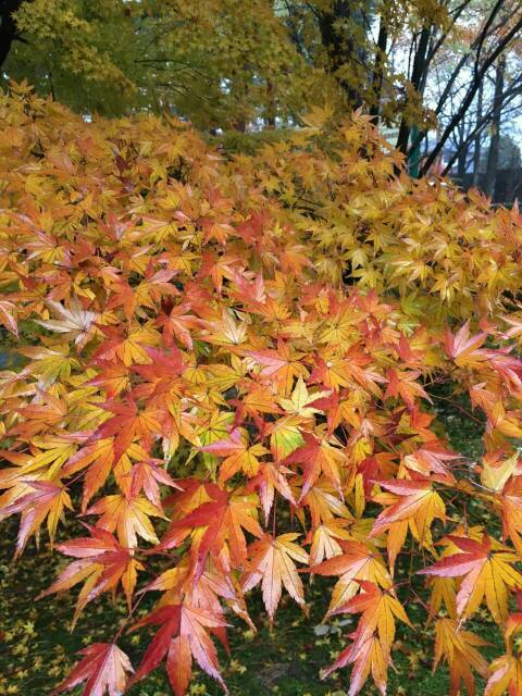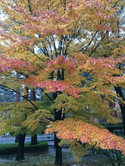叶子好美啊!红色黄色绿色。看着心情就好。