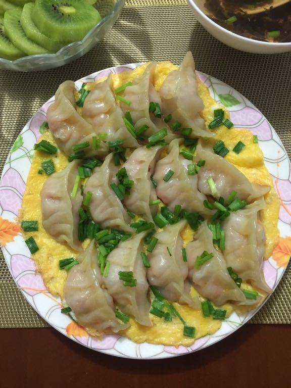 这饺子看起来好好吃、还有鸡蛋、还有水果、比起直接牛奶泡个麦片就吃的我、我要自我谴责一下😄