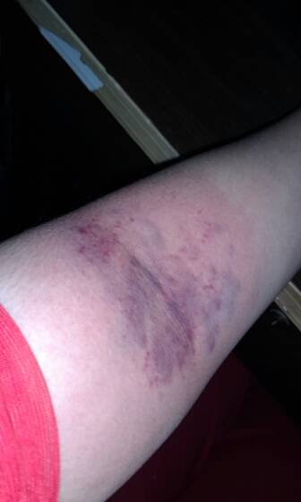 不能再拍了这是皮下出血没用的,我有一回也拍成这样老公把我臭骂了一顿,说血管本来就脆还拍