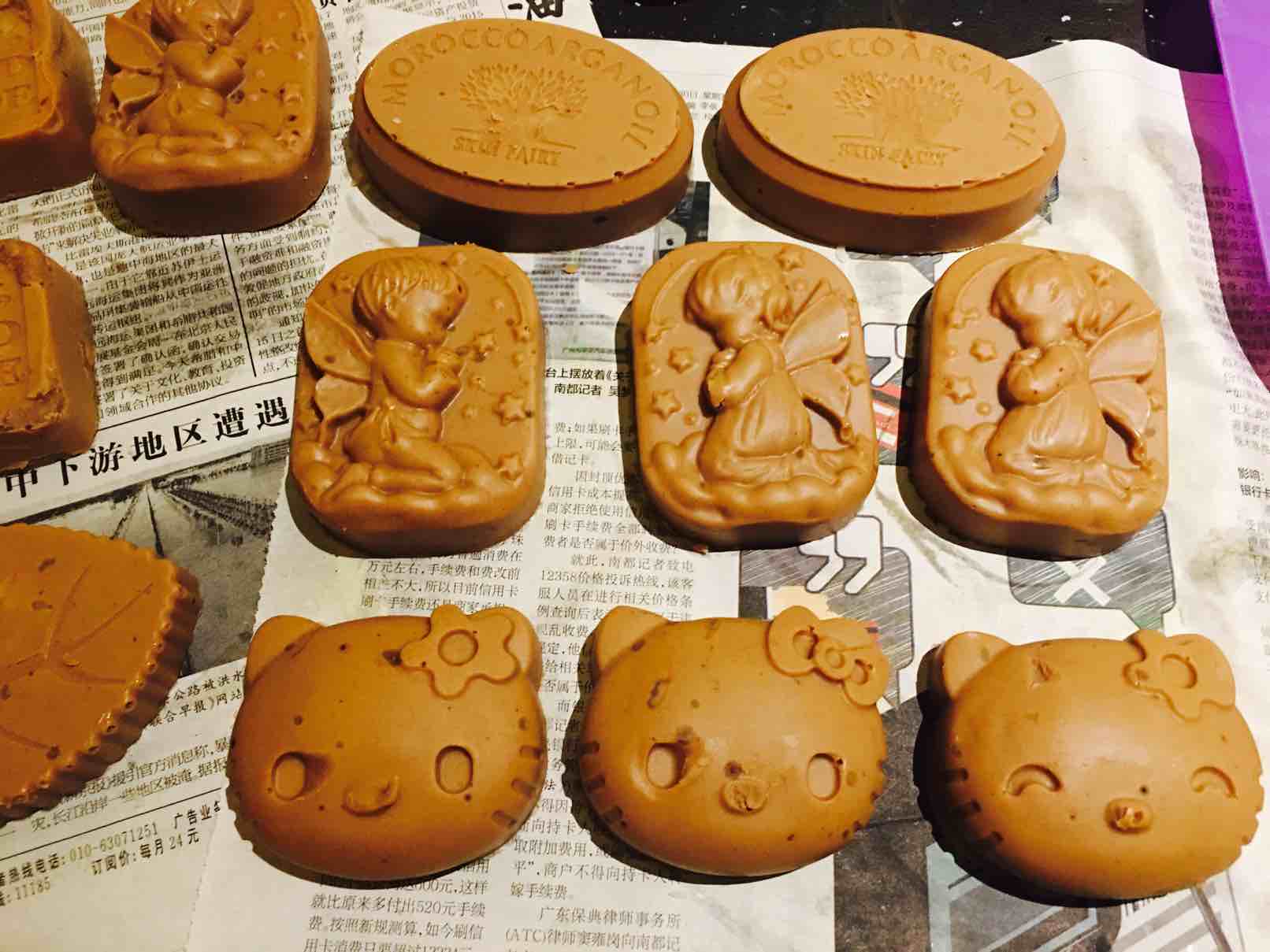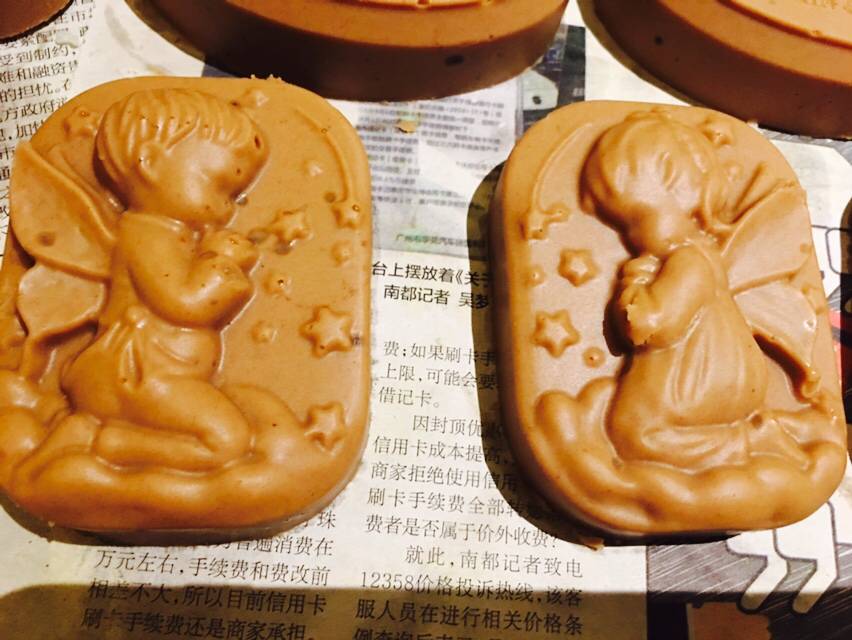 今天值班,昨天做的家事皂由于搅拌时间太短,出现渗油的问题,因为想把步骤和每一步的图片都拍清楚,今天上午又做了一锅姜汁何首乌洗发皂,因为是小膜具,无法渲染,只好把何首乌粉加入姜汁,晚上回来有点心急,出膜,效果不错,大家先看看。