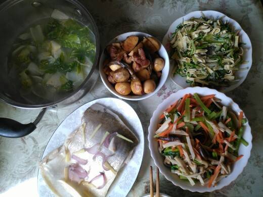 今天老公休息,午餐由他做了,生病前家务全是我承包了,他只负责洗碗,看着他做的饭菜,不禁让我想起老公蜕变的过程,从刚开始的手忙脚乱,到现在的驾轻就熟,可是化了功夫的,我化疗时他因做不好饭菜,大冬天一大早凌晨四点多钟起床,做早饭整理卫生做家务,再赶到单位上班,我说别起这么早,家里脏点就脏点,他说你免疫力低不能将就,我虽然做事慢点,笨鸟先飞起早点不就行了吗,只要你好好的这都不是亊。