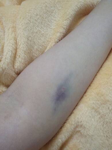 没有按好,不光要按针眼那一个地方。进针后并没有扎到血管,而是O.5厘米或者一厘米才扎到。所以按压面积要大些,针眼没出血,里面在渗血,所以会有淤青。