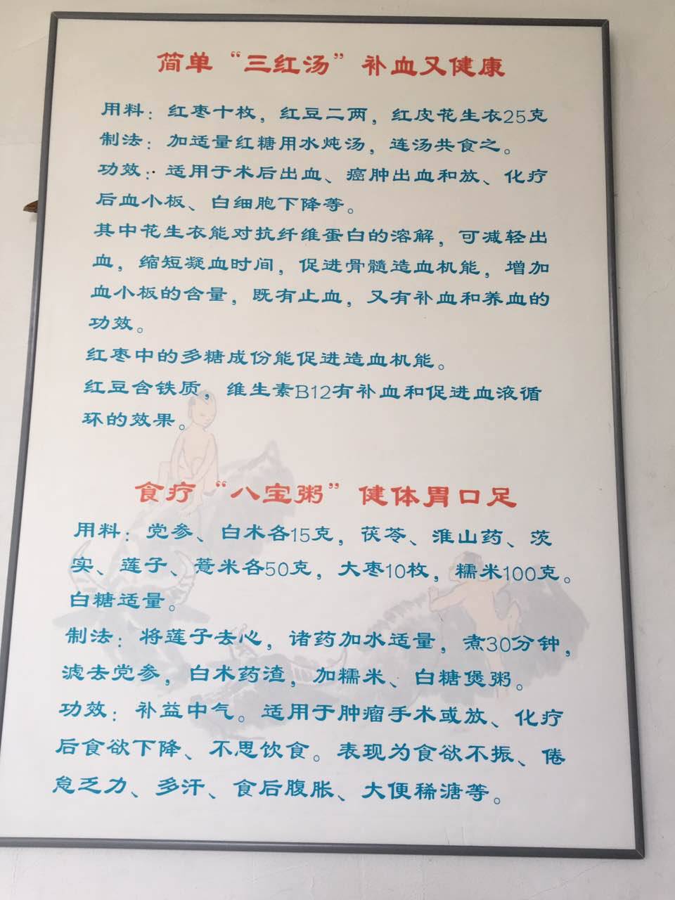 还有就是要适当活动一下,这样可以升血。再就是可以喝五红汤。补不能猛补。在慢慢来。