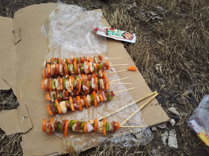 昨天以前骑车的骑友邀请我参加他们的烧烤聚会,说是自从我生病就没有见过我了。虽然不能吃烧烤,但是想能和大家聚聚,还是挺开心的。烧烤串子是男骑友串的,是不是很漂亮。为了垒土灶,昨天他们研究了一下午。一锅煮也很受欢迎。我做的糖醋萝卜丝评为最佳。
