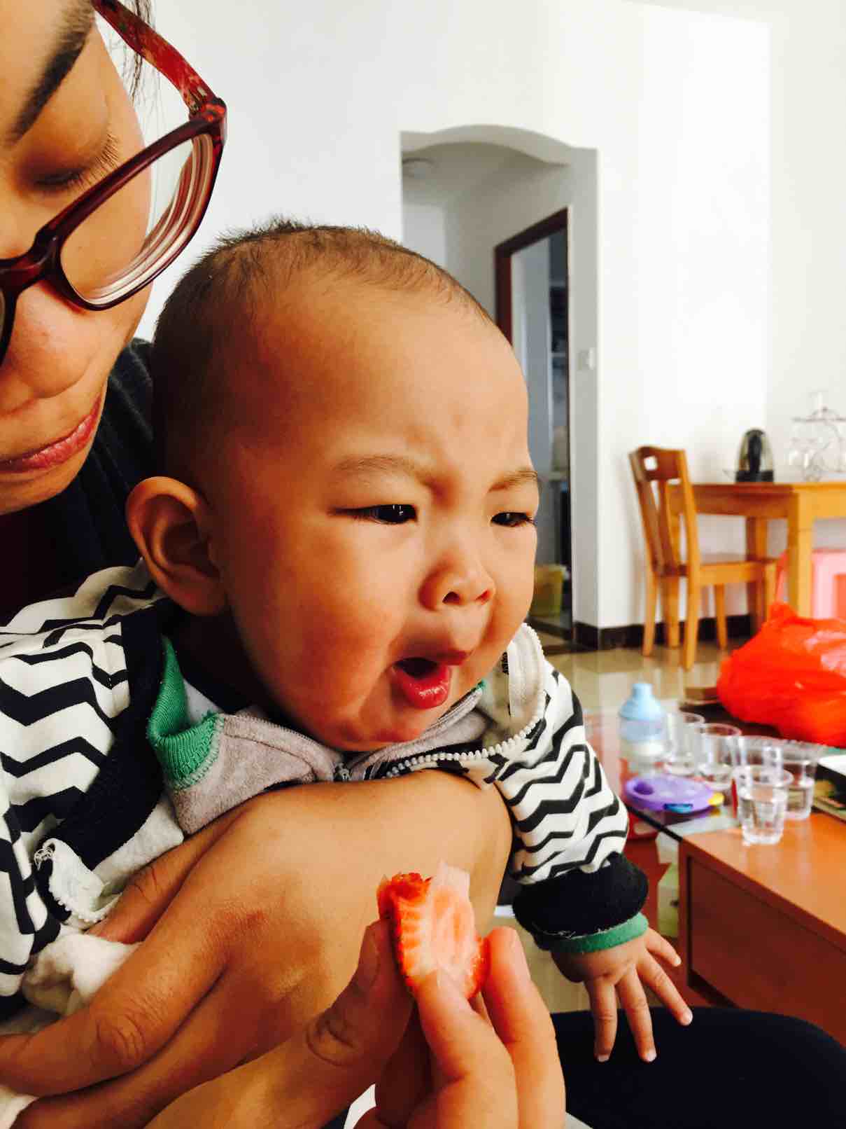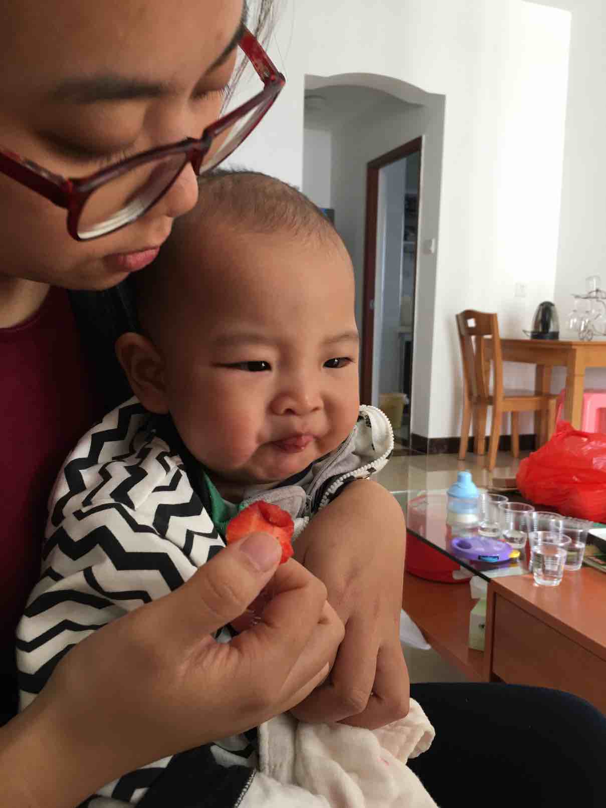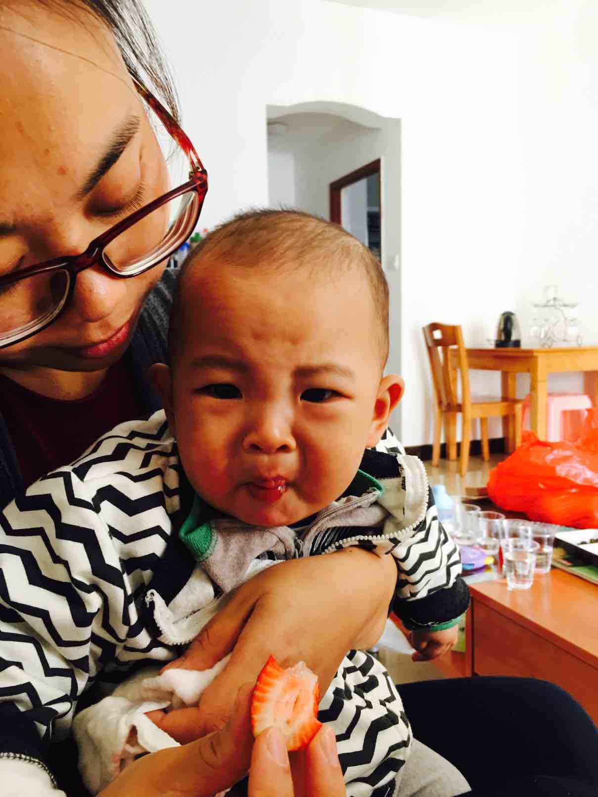 最后妈妈给宝贝吃了一颗酸酸的草莓