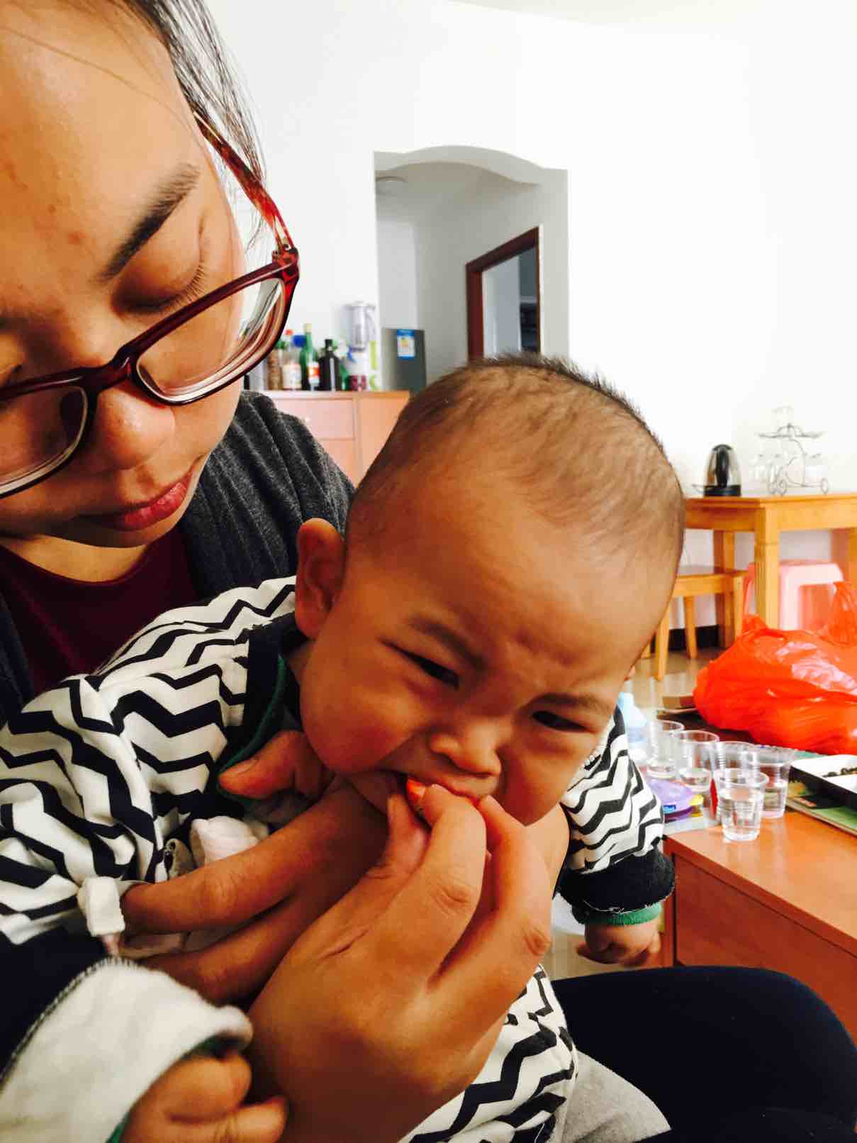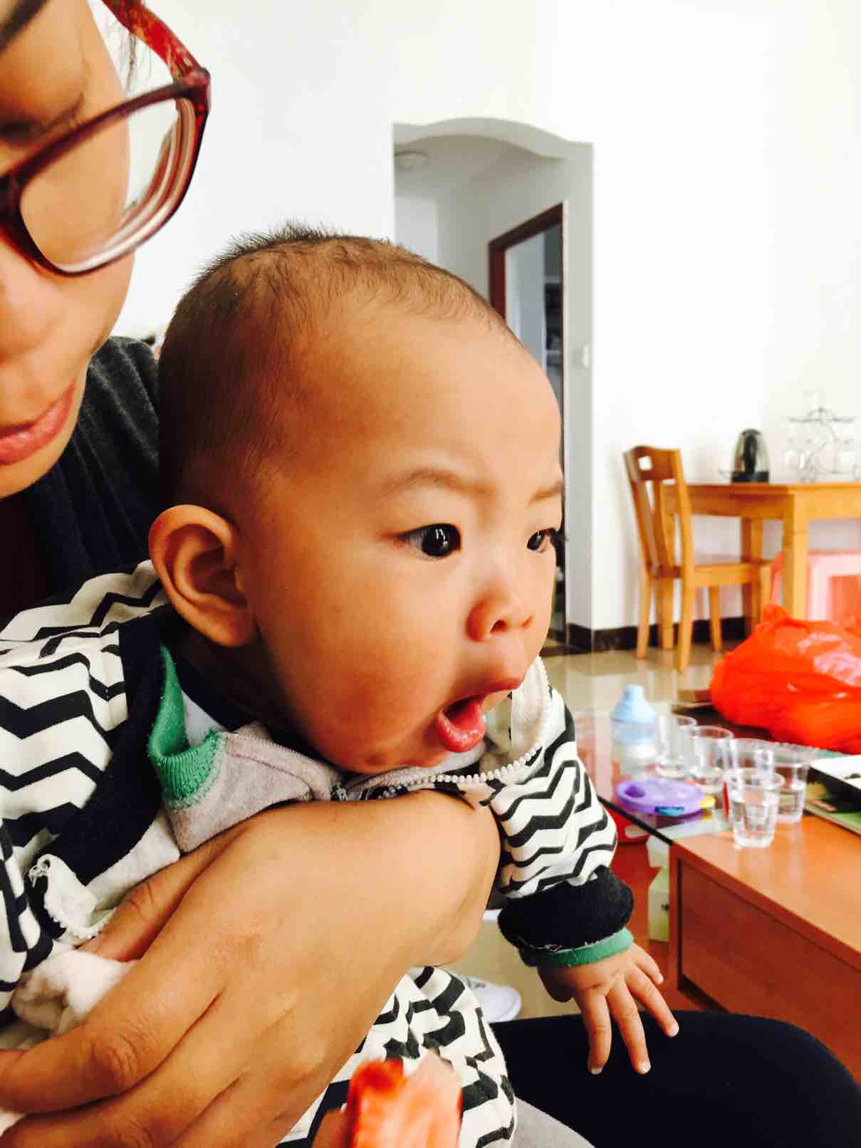 ,宝贝的表情太可爱了。
