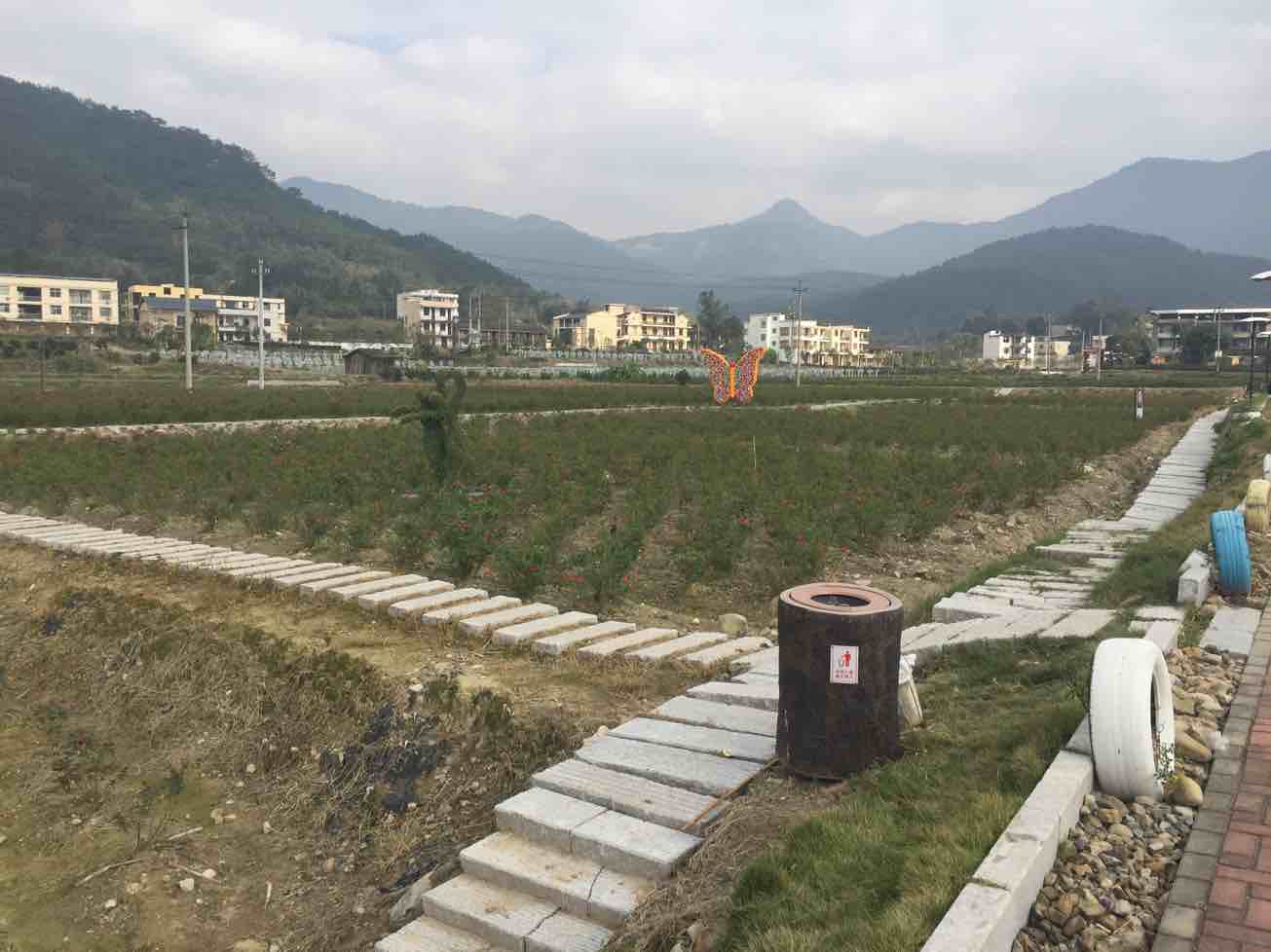 在女儿家当了一周义工,她建议拐道去看花海,再送我们回融城。出福州绕三环入高速北进,不一会到达闽侯白沙镇孔元村,不料想抵达这里时,看到的除了两边植满灌木的田间步道,透着一丝生机外,田野里呈现的是一片荒凉。据说往时这里花团锦簇、百花争艳,而今田间一片静寂,偶见块把花田,也是花将凋零,只能勾起人们对蜂蝶穿梭花海的美好向往,还有那小部分田园里葱绿的花苗,预示着来年的壮观景象。