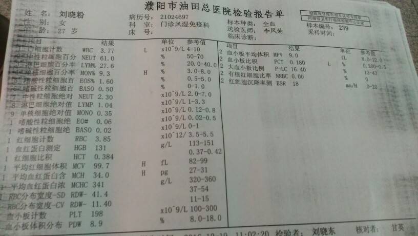 结果很好 只不过白细胞有点低 但问题不大