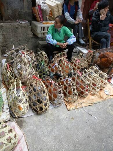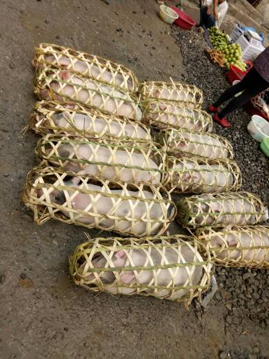 上午在巴马县城的集上看到了比坡月集日更丰富的物质。在竹制品区,发现有做工很精细的罗,比筛子沿低,里面没有漏眼,用竹皮编的密密的,我怀疑水都漏不下去。真是太喜欢啦,就买了五个,邮回去,送亲朋好友,过年他们可以放包子,包饺子放饺子,也可以平日里晒个豆子用。在家禽家畜市场一角,看到了更多的家禽、家畜。太搞笑了,小猪大猪都像鸡鸭一样装进竹笼里,我看了半天,想着他们是怎样吧猪装进去的!随后在蔬菜区逛了一圈,觉得没什么可买,只买了几个当地玉米回去煮了吃。中午回来包饺子,没十分钟,就吃上了,香!下午闷一觉,然后去河边练功!
