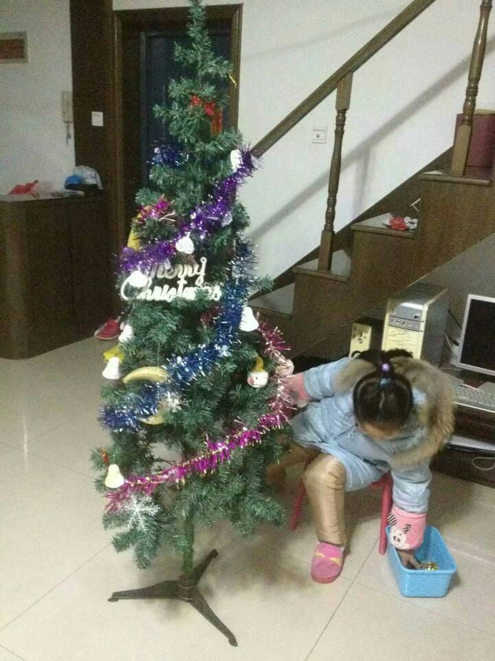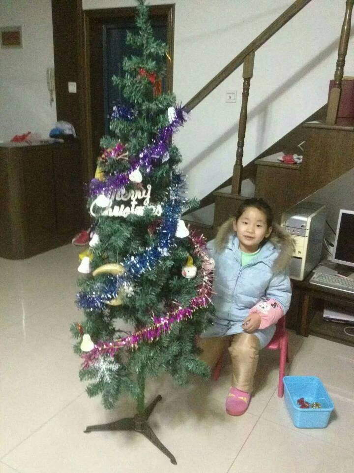 今天女儿一放学,就在装饰圣诞树,她说每年都要认真用心做,妈妈就会平安健康!说的我想流泪,谢谢我的小棉袄,妈妈爱你!妈妈会长命百岁的!还和爸爸在秘密地准备礼物,说在圣诞节那天再送给我哦!