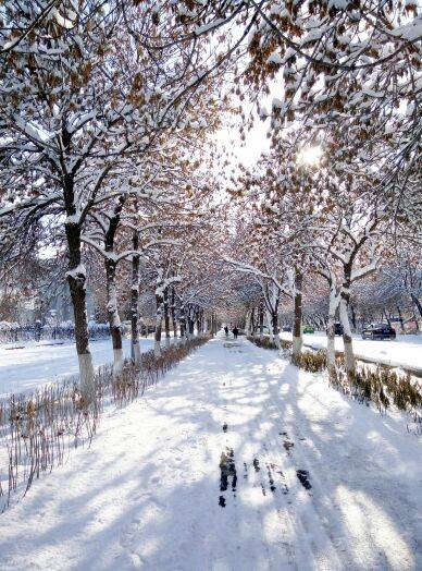 从昨天晚上大概10点多开始下雪,一直下到今天下午2点多才停,太阳露面了。路上积雪深度可以没过脚面,这是入冬以来最大的一场雪。