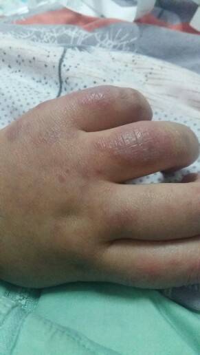 丽丽 33冻疮 我的也刚刚长一层层小水泡看着就心烦然后就变红紫如图所示