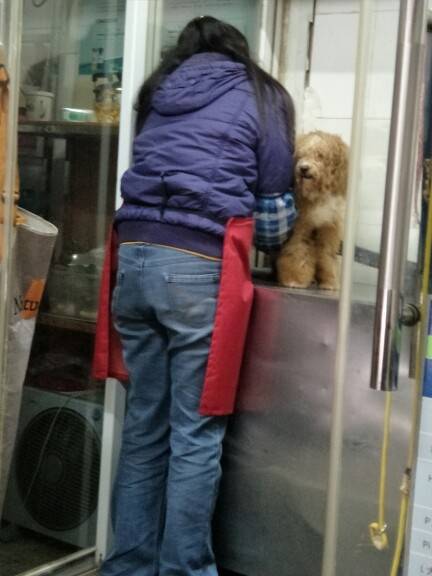 去了朋友那买了一条贵宾犬!起初看着它挺凶的,嘿,洗了澡,剪了发,剪了指甲,老板娘跟它说,洗干净啦,你的新主人啊,你有好日子过啦😄,哈哈!它听到了,挂上绳子的时候,它超级兴奋的,转个不停的,然后不肯进窝里,老板强硬来了😁!它凶了老板一下!