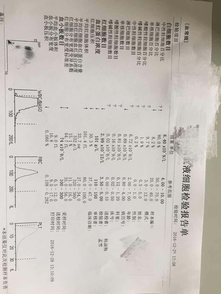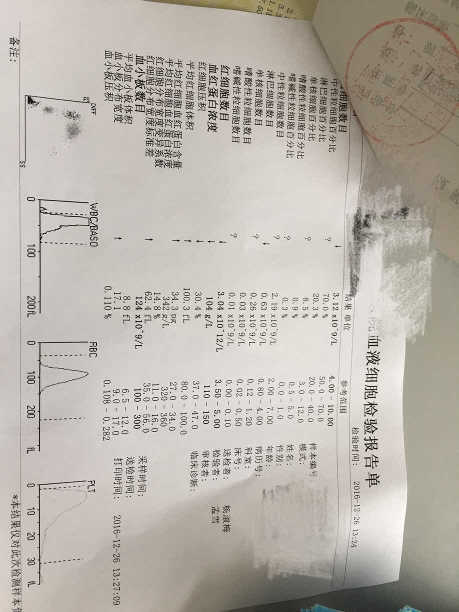 姐妹们帮我看看我的血常规单子,化疗后第七天1.7,医生要连打两天生白(哈药里亚金两支)第九天验血3.8,要求打两只里亚金,第十天验血3.12,要求打两支里亚金,第十一天验血2.87,这一天给换药了,换瑞白两支,第十二天验血8.4,由于这两天有感冒症状医生要求再巩固两支里亚金,结果第十三天量血24.25,终于不再打了。我想问问姐妹们,你们第七天以后也要打那么多吗?我7到12天之间连打六天两支药,每天都抽血,是因为我指标不好吗?我现在明显感觉身体大不如前了,食补不吸收,补多了转氨酶就高,小白一点不上,四疗刚完成,还有一半,怎么熬啊!
