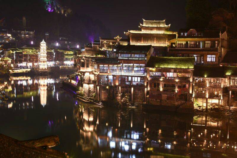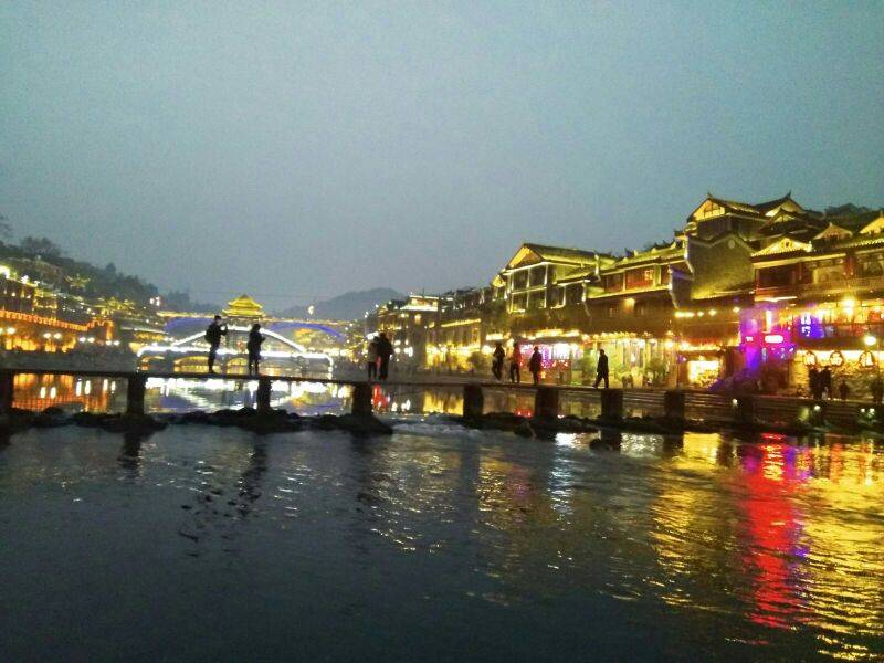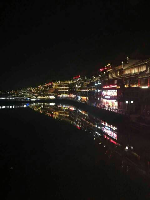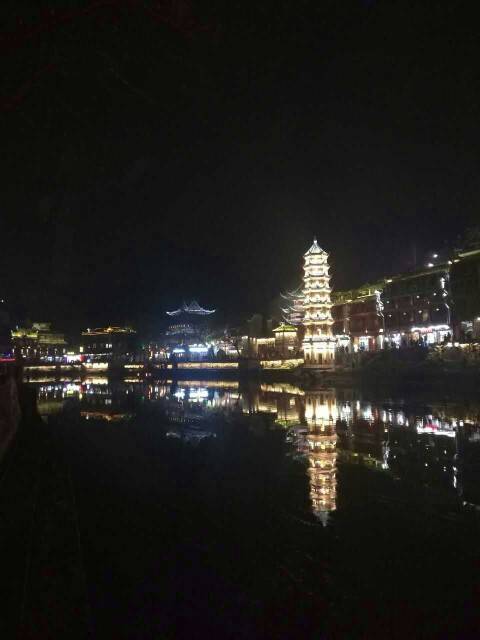 夜景是在凤凰古城,玻璃桥在张家界