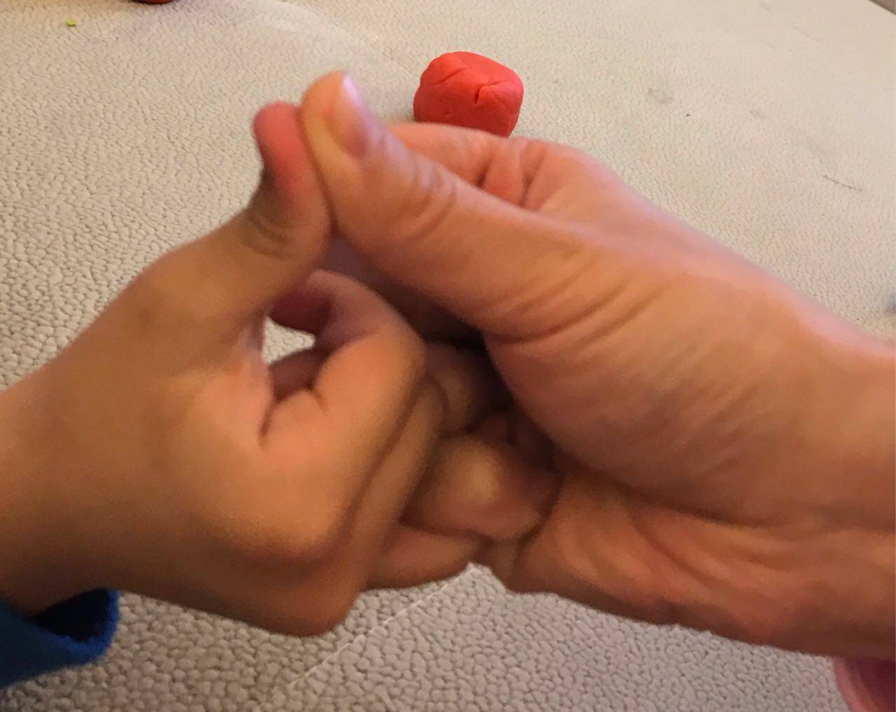 以前经常用拉钩盖印来约束孩子看电视的时间,看一集就不看,孩子开始的时候似懂非懂,到后来一集结束就主动玩别的。这个规矩有一年没有用了,但是似乎孩子还是挺喜欢这个游戏的,很配合地照了照,还唱了儿歌。
