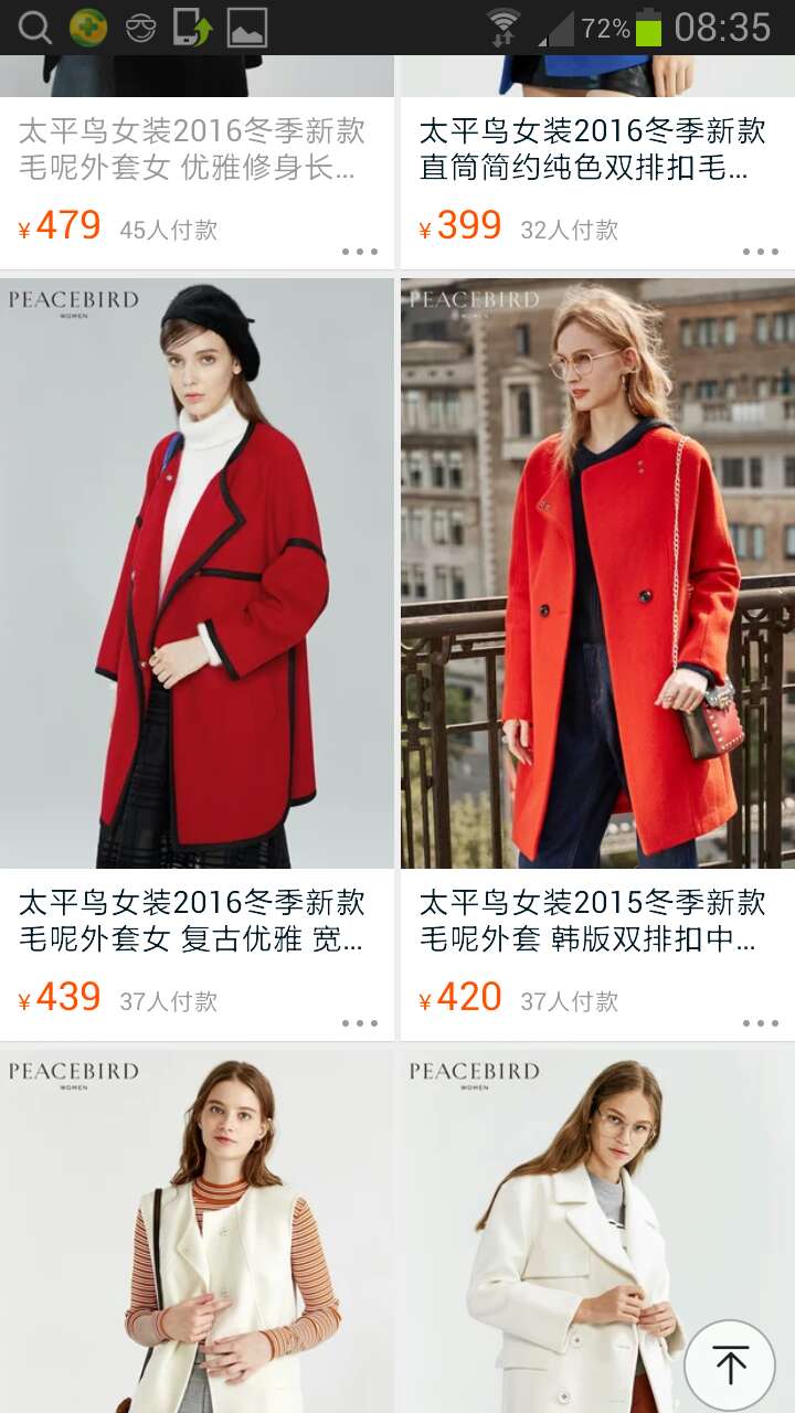 给你找了下,太平鸟旗舰店,很多红色大衣。