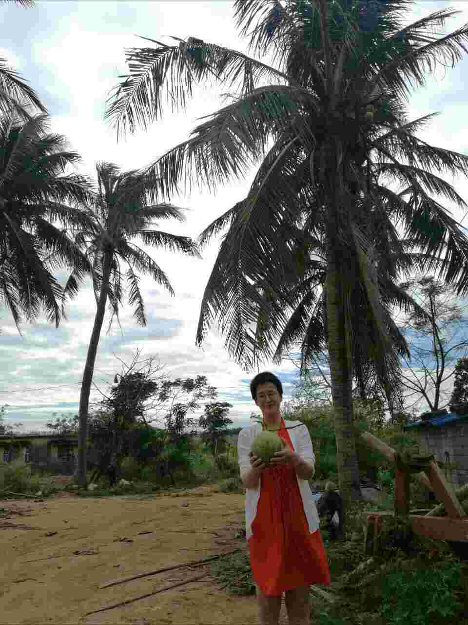 到海边真是孩子的脸,刚刚还是阳光灿烂,一会儿就阴下来了,乌云密布,对着大海好想唱歌;又来到了一个农场,农民很纯朴,拿出新鲜的椰子给我们吃,临走又送我们一只,给钱也不要,和他们聊天很开心,他们生活不富裕但很满足;晚上小区里又想起音乐,又加入跳舞的对伍,打听到他们跳的是僵尸舞,也喜欢上了,呼吸着新鲜的空气,过的很充实。