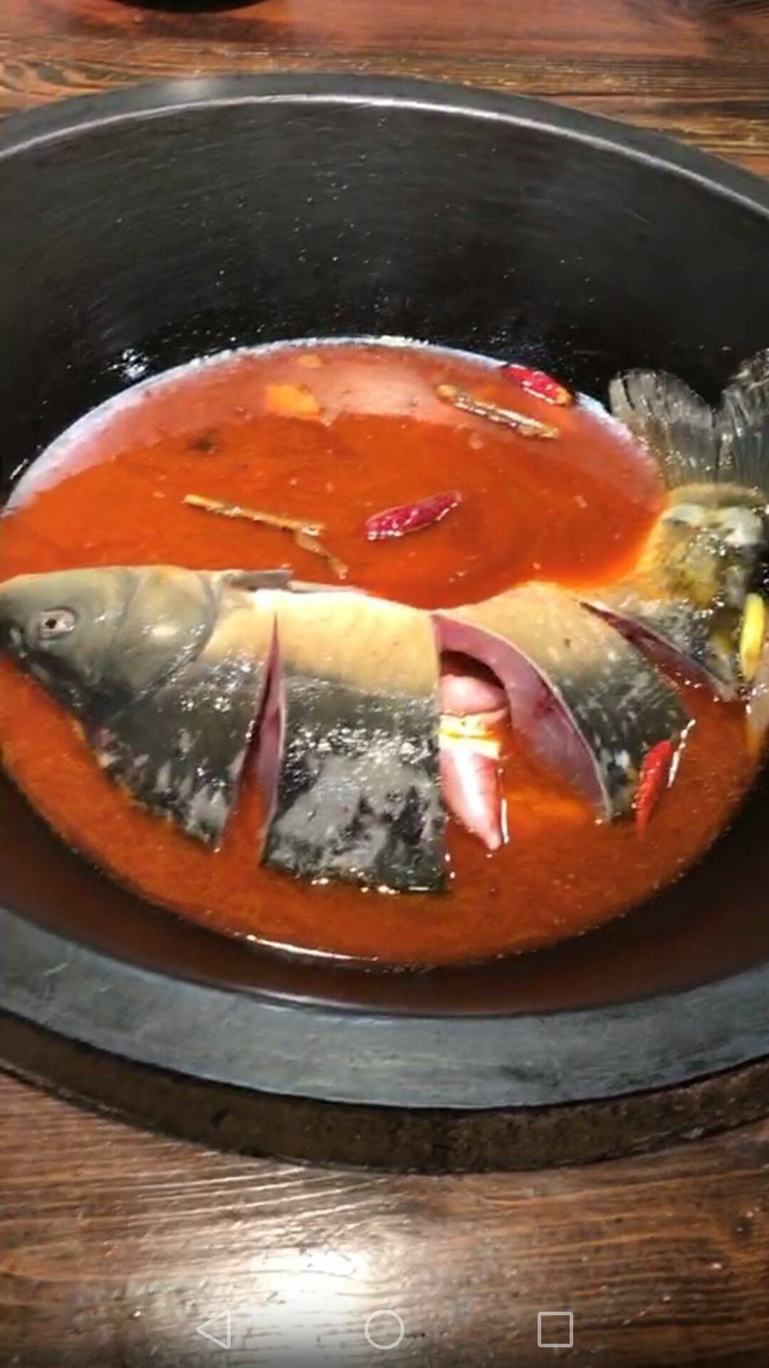 今天又出来吃饭了我现在真是多姿多彩呀纯铁锅柴火炖的大鱼呀