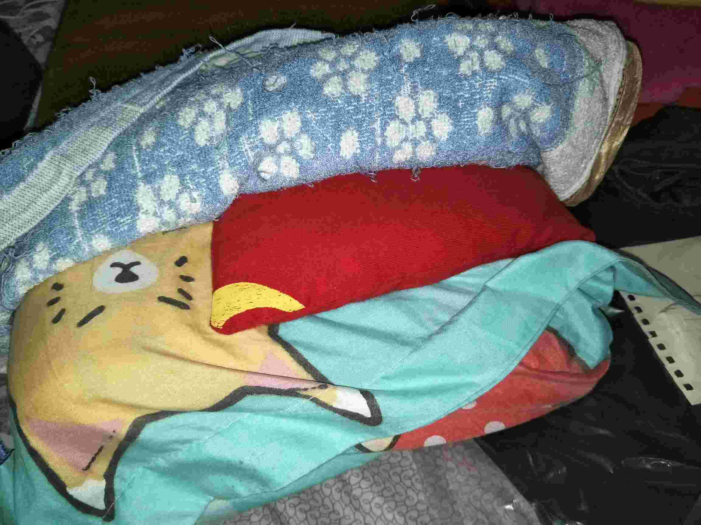 然而,我买了两斤艾绒,剪了一件不穿的衣服,做了一个坐垫,两个枕头垫,一个腰垫,共4个,弄了一下午,一针一线,还好有手工😆😆,缝的不错,不错,(黄婆卖瓜,自卖自夸)哈哈!