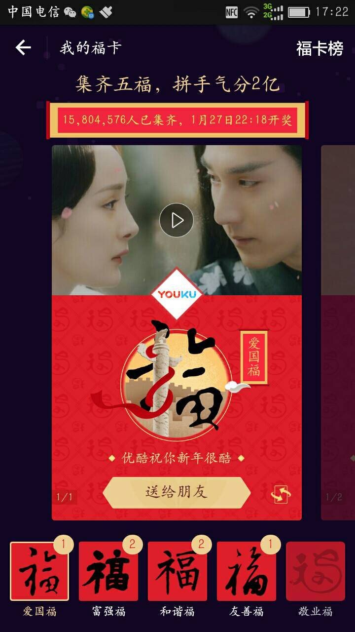 我有其他的四个福,想四个换一个敬业福 ,有的友友找我哦